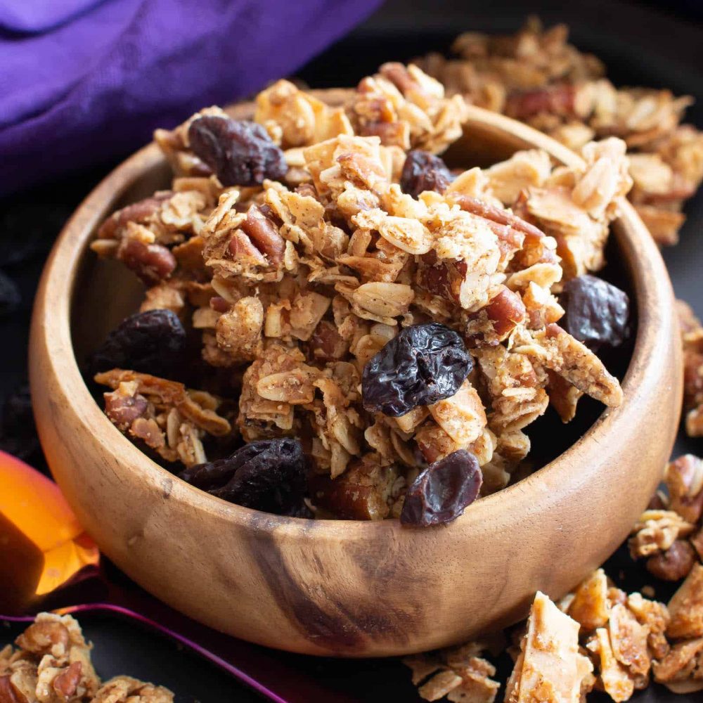 Oatmeal Raisin Vegan Granola Recipe: big cluster homemade vegan granola with juicy raisins and fiber-rich oats! Gluten Free, Healthy, Dairy-Free. Source: Oatmeal Raisin Vegan Granola Recipe – Beaming Baker